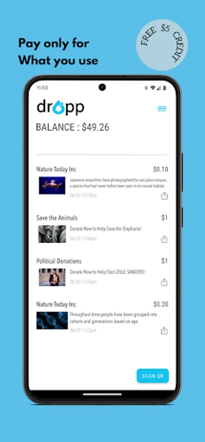 Dropp’s QR scanning feature makes purchasing power seamless – scan a product’s QR code and pay your way, without the hassle of entering personal or payment information.