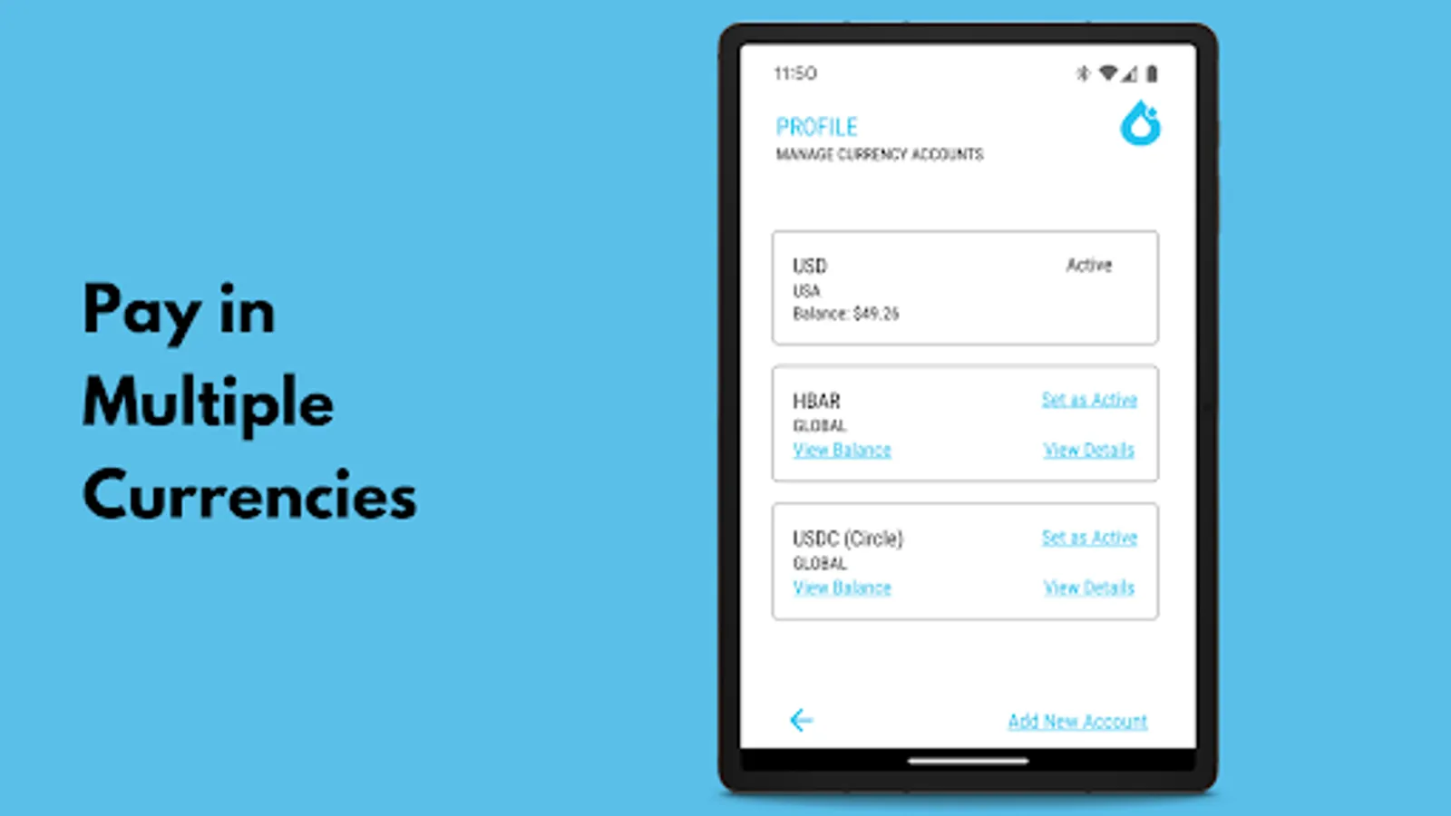 Dropp supports payments in US dollars, HBAR, and USDC.