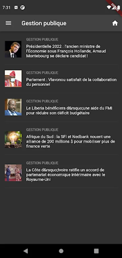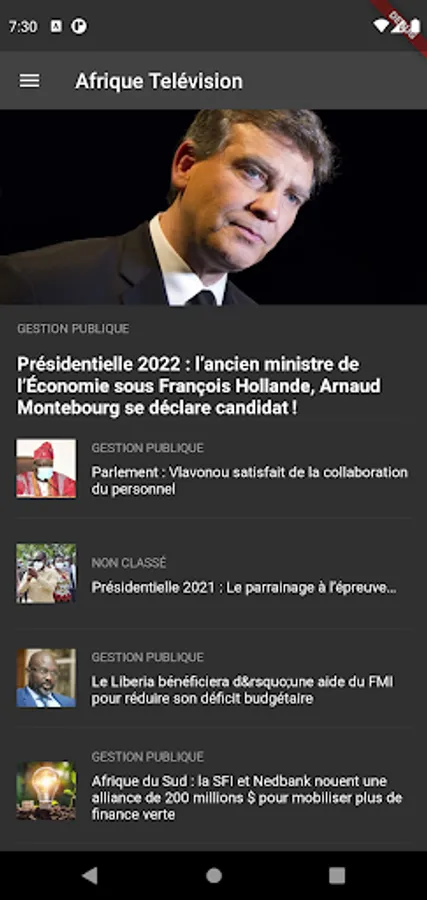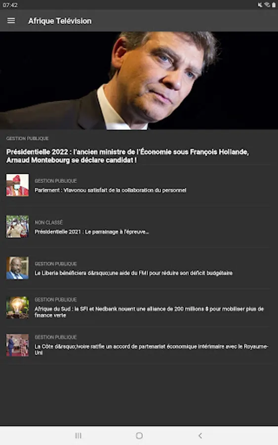 Afrique Télévision is a mobile application that relays information from its main news site with the same name. It publishes the news African news, with an emphasis on the video hence the name "Africa Television"