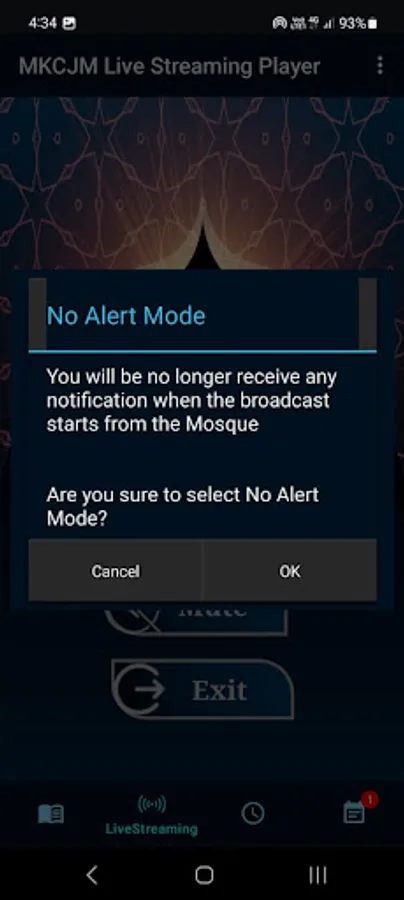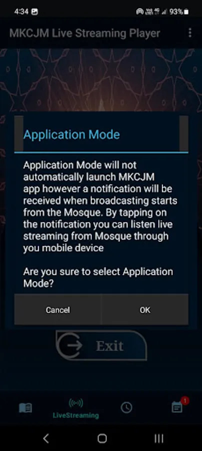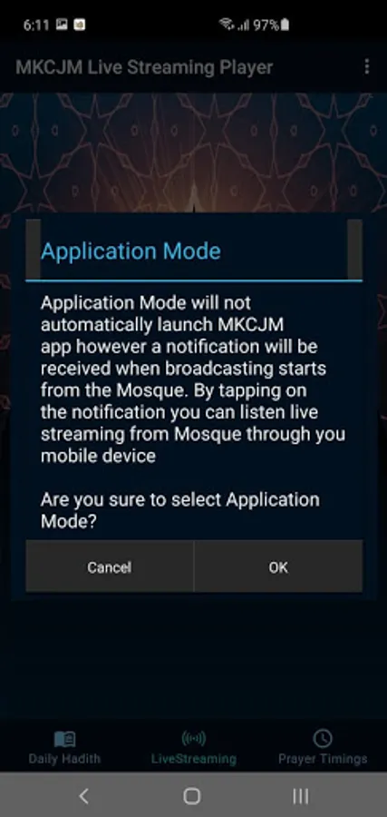 In this mode you will see a notification when the mosque starts live feed, you have to click to listen, if you don't click the message then you won't hear anything