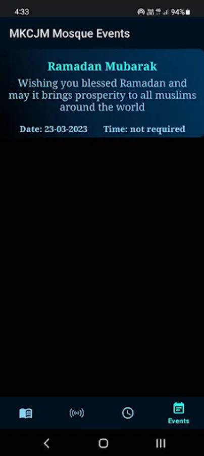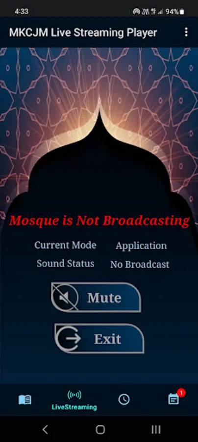 - No chance of missing any broadcast from the Mosque. You will get notifications when the mosque starts broadcasting