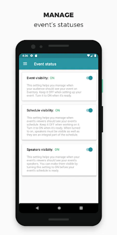 With this app, we aim to set you up with the most important features from Eventory Dashboard so you can take care of any sudden changes and updates in real time, straight from your phone.