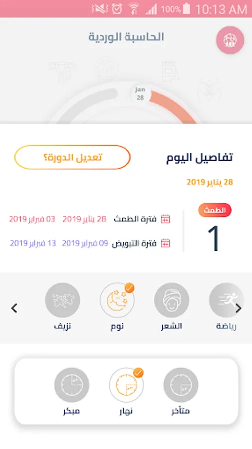 ★ تنبيهات على اوقات حدوث الدورة الشهرية أولاً بأول