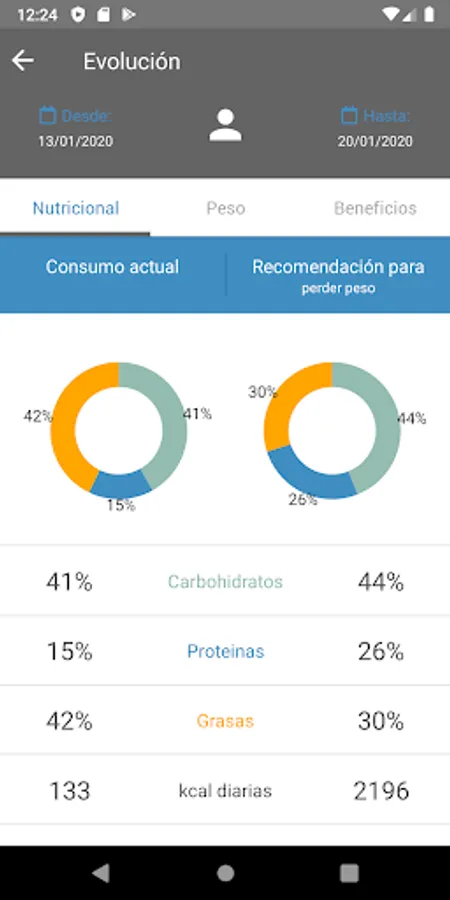 Once done, Nutrabow will show you the amount of kilocalories and macronutrients daily that you will need to contribute to your body to meet your nutritional goals.