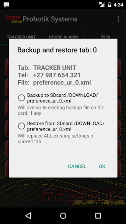 - BACKUP-RESTORE! Each tab's settings can be exported/imported to simple text files on SD card. You don't waste time on manually configuring Probotik Systems app ever again.
