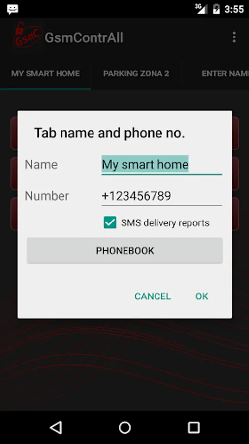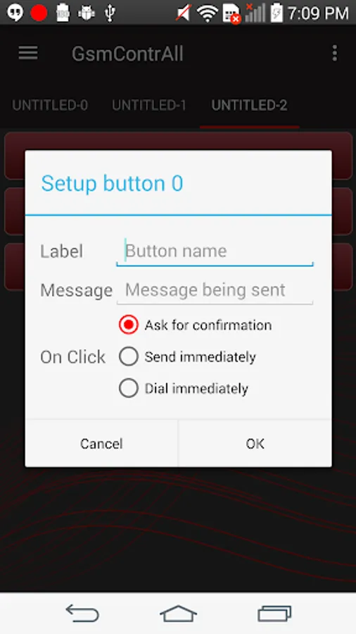 GsmContrAll even handles multiple recipients by organizing them in tabs, each with a different number of easily customizable buttons.