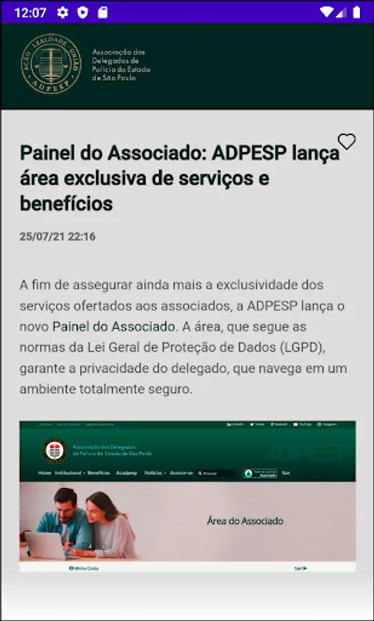 Application developed for Delegates and associates to follow the news of the corporation, related news, monitoring of birthdays, events, vacation colony reservations and exclusive benefits.