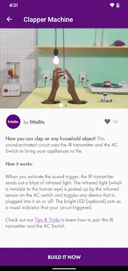 The littleBits GIZMOS & GADGETS app is your personal guide to unleashing creativity. Discover thousands of inventions, control your inventions wirelessly, connect with the global littleBits community, and access step-by-step tutorials. If you have the Gizmos & Gadgets Kit, 2nd Edition, this app is a requirement!