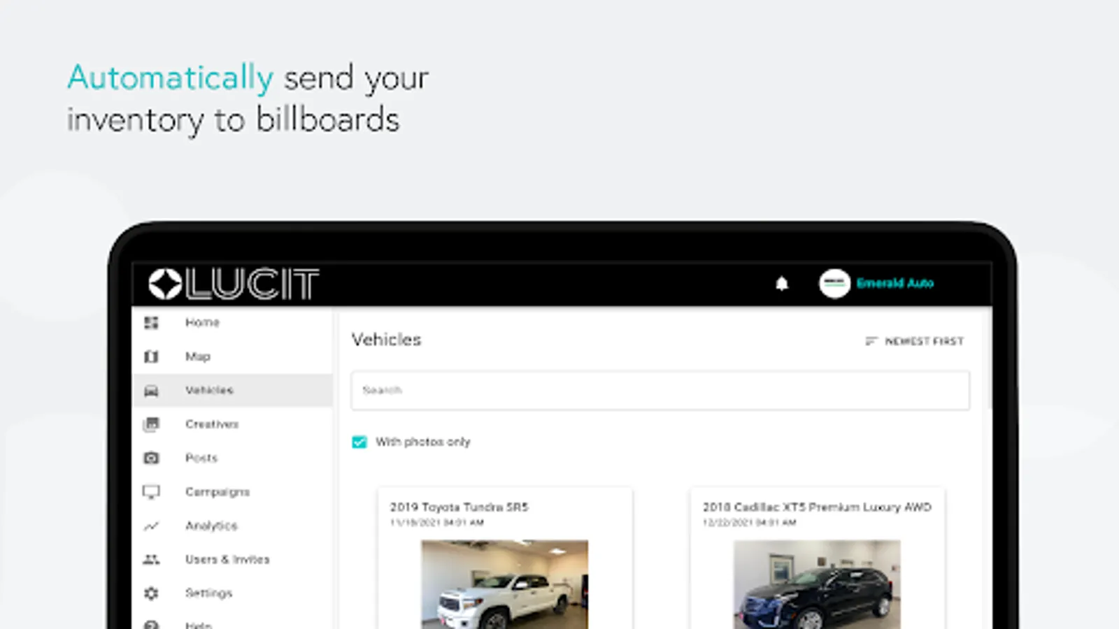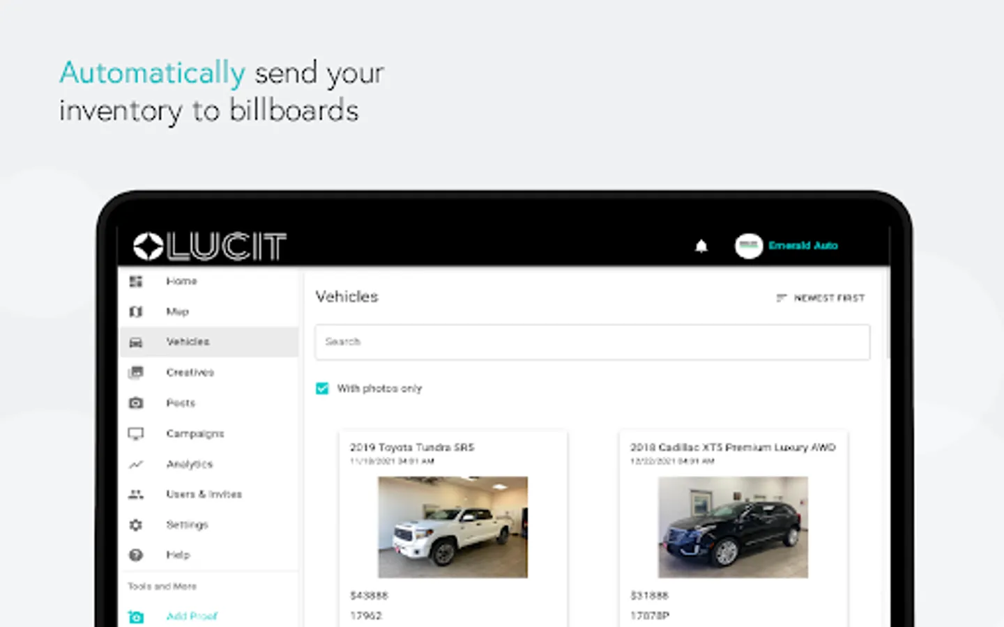 Get key industries like automotive and real estate companies on your screens by offering them seamless integrations to their data systems. After initial integration, your traffic team only has to load one dynamic Lucit feed per client and Lucit will take care of the creatives making it easy for clients to use.