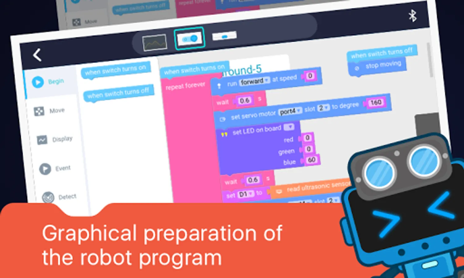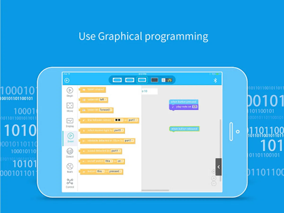 -Create Customized Robot Controller with Graphical Programming: Realize your imagination and control your robot by simply dragging, dropping and programming the command blocks.