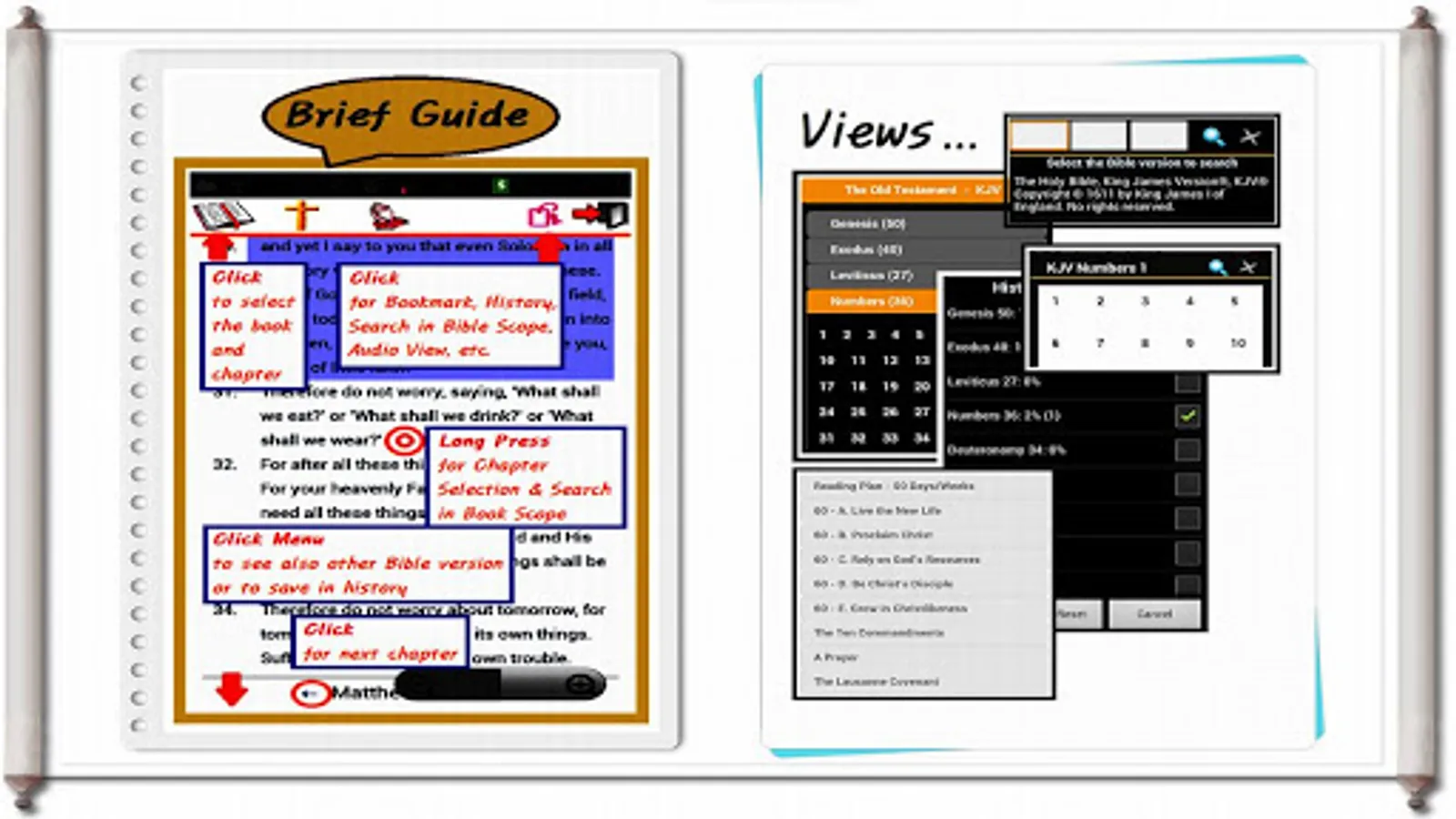 4. Bible Reading History (Save by Pressing menu in each chapter)
