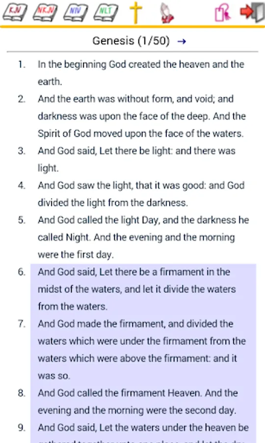 5. Bible Reading History (Save by Pressing menu in each chapter)