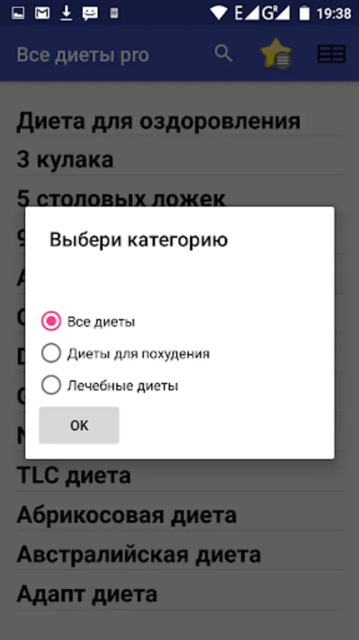 You want to lose weight, get sick or have to sit on a medical diet, but do not know what, just download the program "All diets." In this excellent program you will find an almost complete collection of diets for all occasions. "All diets" will be a great help to you, you can add ponravivsheuyusya diet to favorites or watch diet categories.