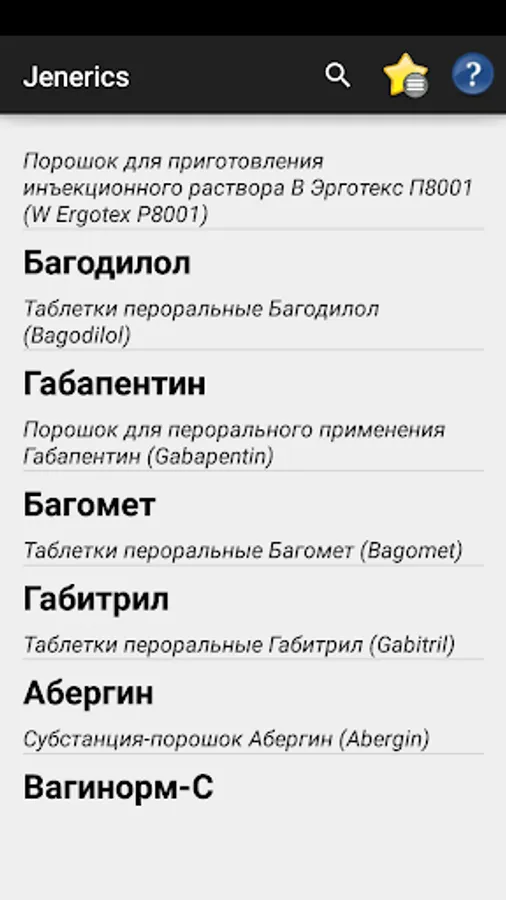 Also picked up a lot of analogues (generics) for most drugs. Not to forget the right medicine, you can add it to your favorites.