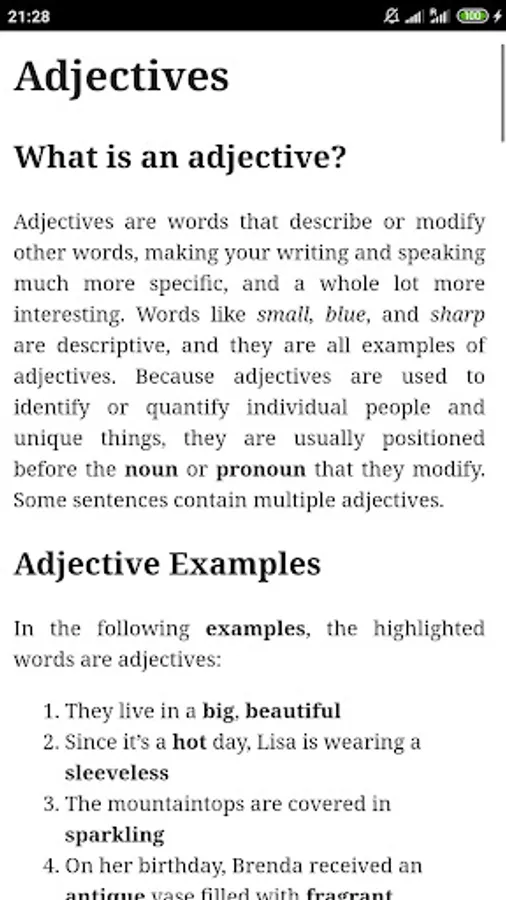 Adjectives, Verbs, Verb Tenses, Nouns, Conjunctions, Pronouns, Adverb, Preposition, Punctuation
