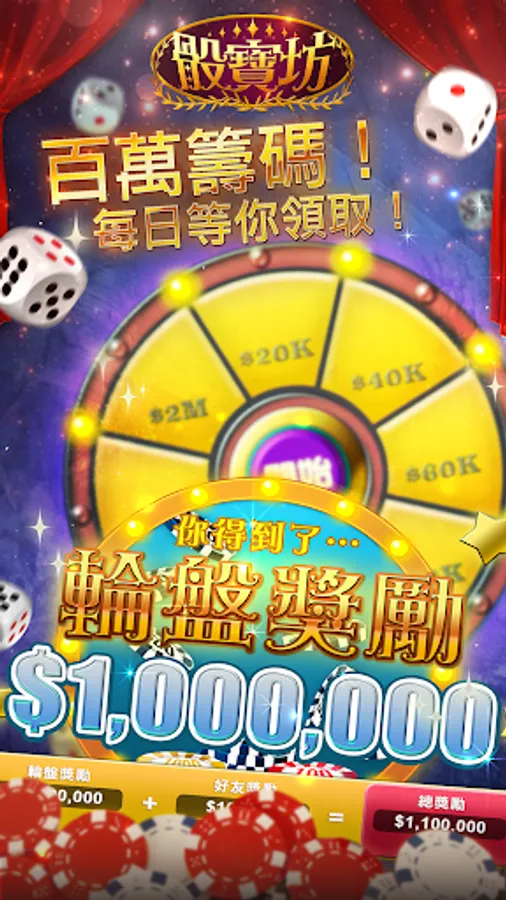 ► Lucky wheel offer daily gift with up to 1,000,000 chips!