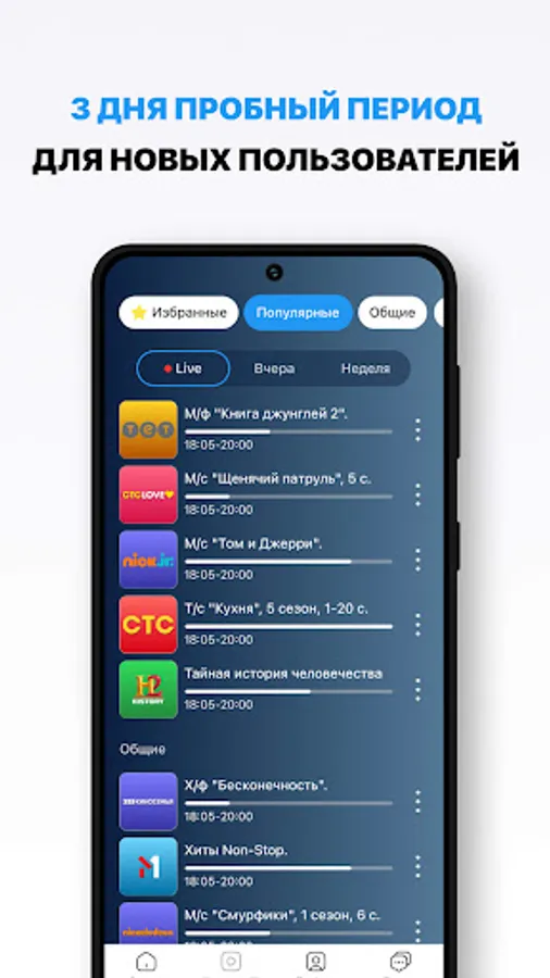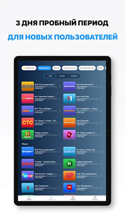 Install the OTTCLUB application and watch the most popular TV channels, your favorite movies, series, cartoons and TV shows. After installing the application, you will have access to a test period for 3 days.