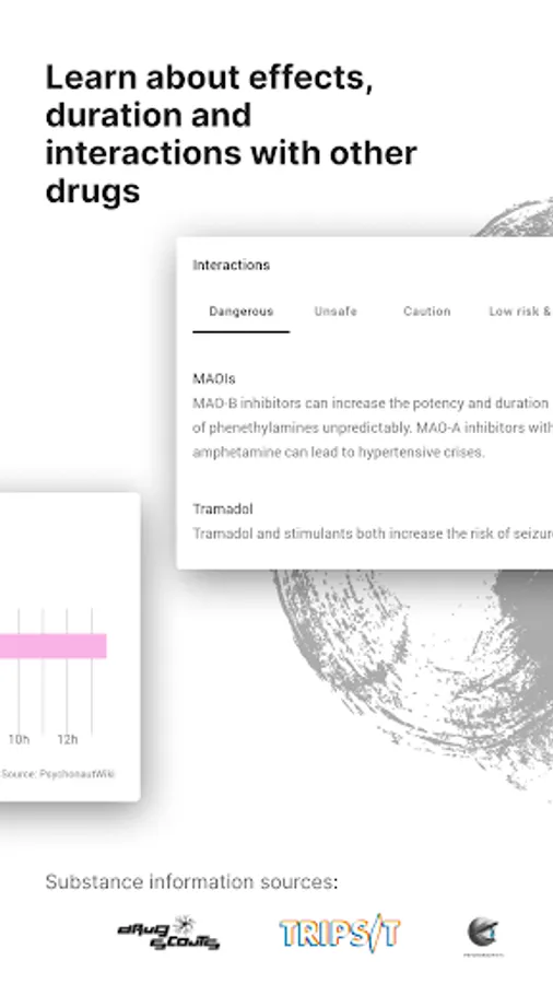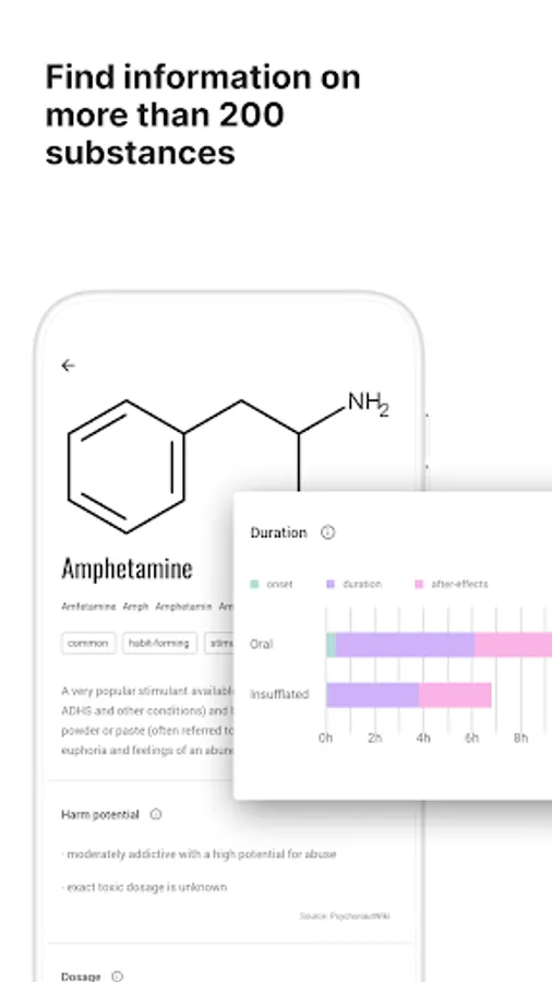 Check the profiles of more than 200 drugs for educational purposes: Stimulants like MDMA and Amphetamine, depressants such as Alcohol and Benzodiazepines or psychedelics like 2C-B, LSD and DMT.