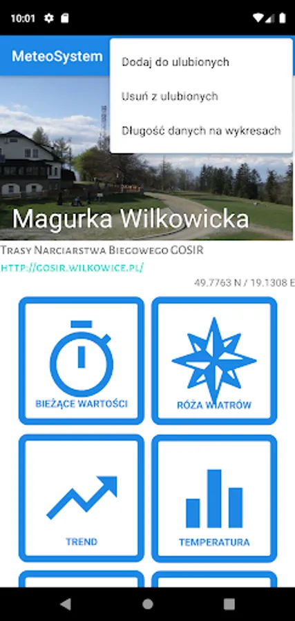 The application displays the weather conditions for paragliders, sailors and tourists based on measurements taken at weather stations installed in the Beskids, Bieszczady, Beskid Niski and more. Currently, the list includes Skrzyczne, Magurka Wilkowicka, Kozia Góra, Leskowiec, and Bezmiechowa Górna near Lesko. The application is based on the APRS system and the devices of ParaTNC and ParaMETEO weather stations, but it is possible to add any weather station to the system that transmits data via APRS.