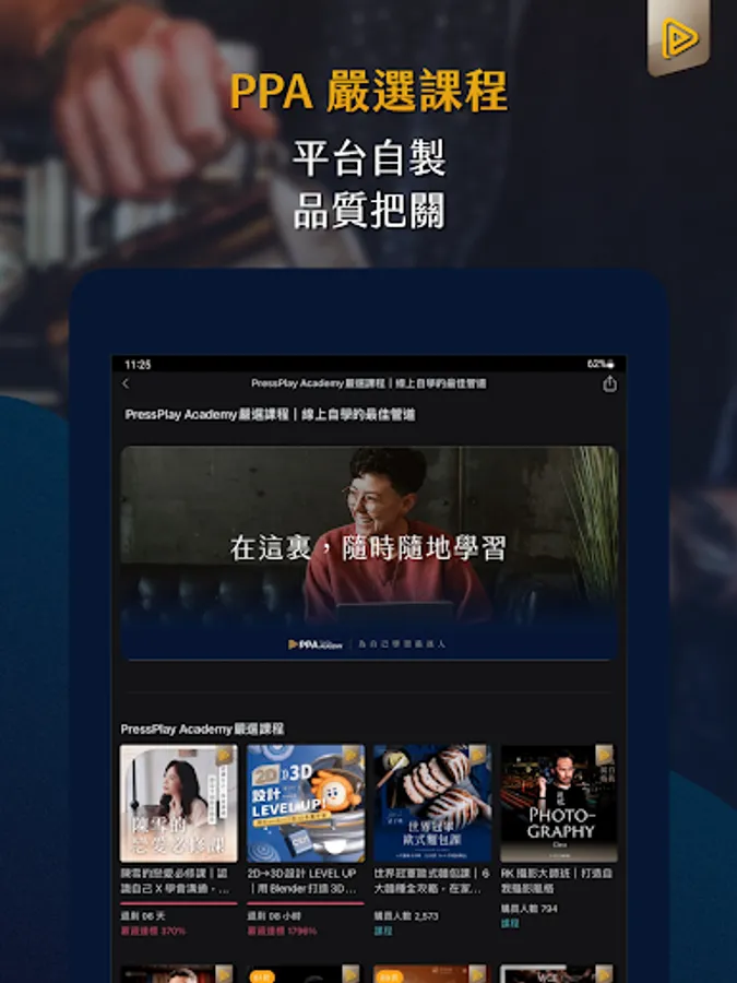 - PPA carefully selected courses: PPA has a professional course team, and invites professionals in various fields to create a variety of online courses with ingenuity. The cooperative courses that have passed the PPA quality certification will bring you efficient learning and a unique quality of life. All courses are carefully selected by PPA.
