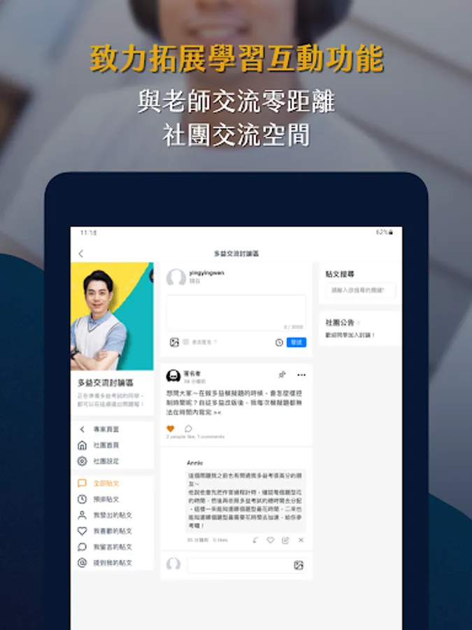 - "Exclusive club" and "private message" create opportunities for teachers and students to interact, so that you will not be alone in your studies.