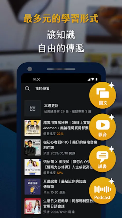 You don't need to sit in a fixed position, and you don't need to spend a lot of time finding a quiet space. You can read a new knowledge in 5 minutes, or listen to a good book summary in 10 minutes. You can use a computer, mobile phone or tablet, anytime, anywhere, in the way you want to learn the knowledge you want, and make learning happen anytime, anywhere~