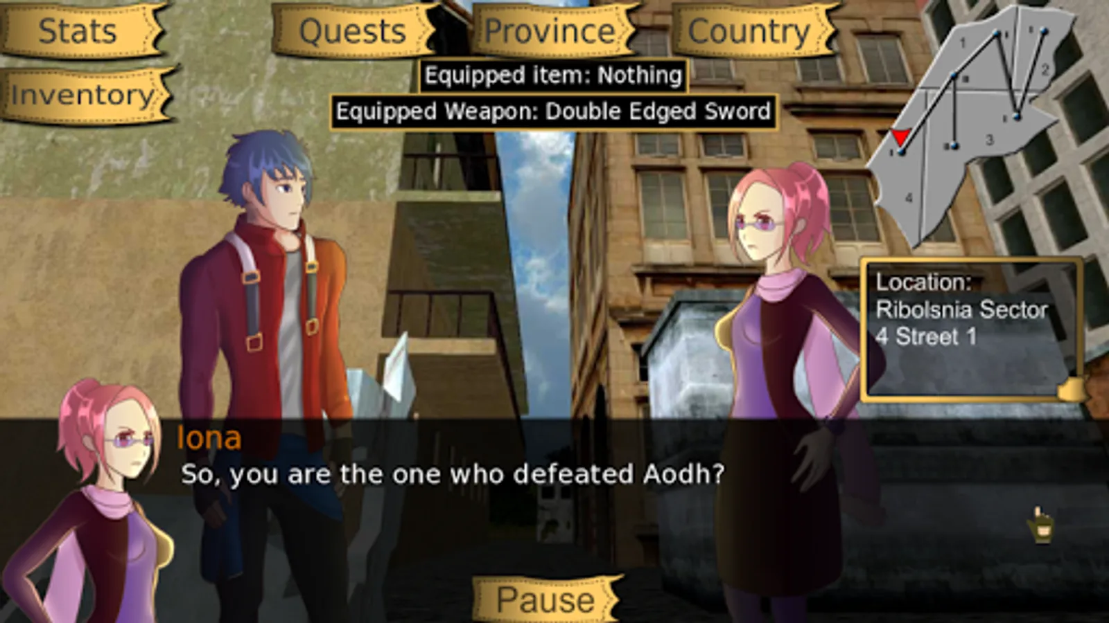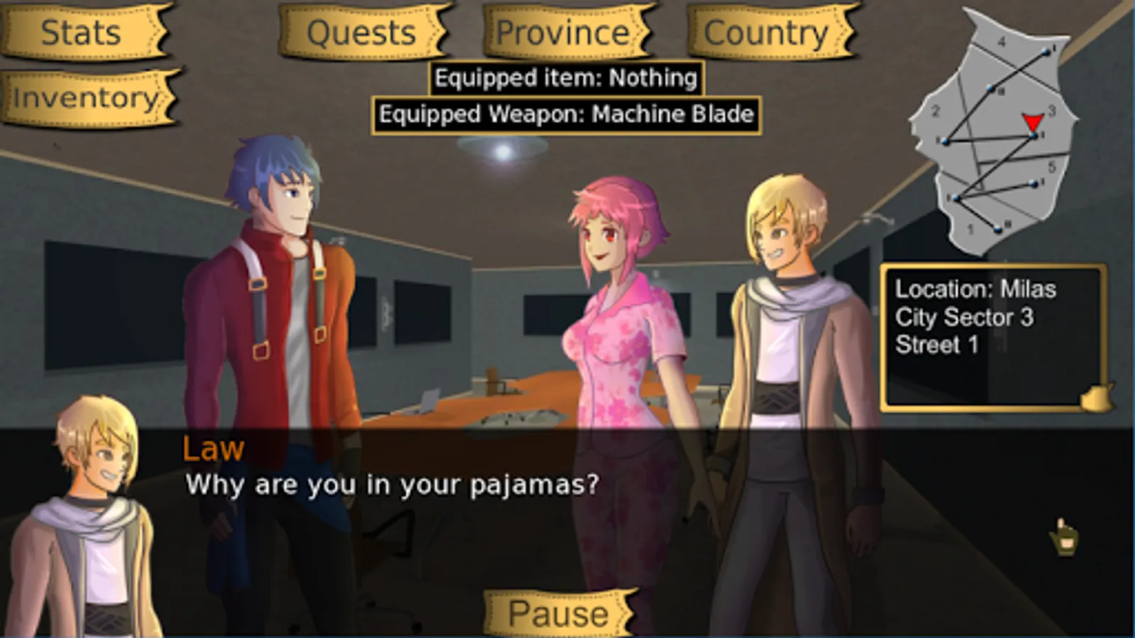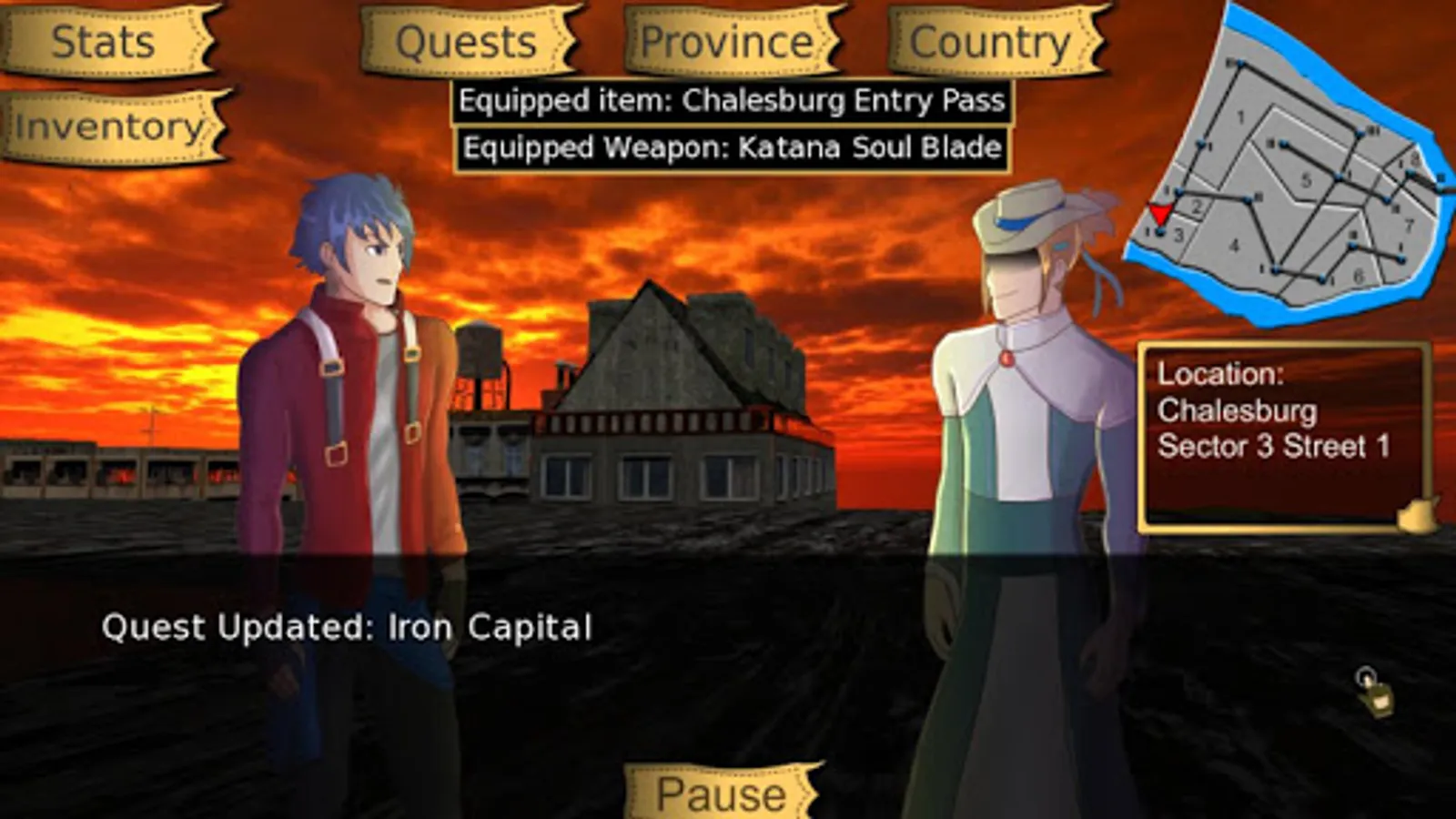 This game features turn based battles and exploration of the game map using in game choices. There is an inventory, quest and merchant system as well. All effort has been done to make sure that all the necessary RPG elements are included in the game alongside the immersive story telling features of a visual novel.