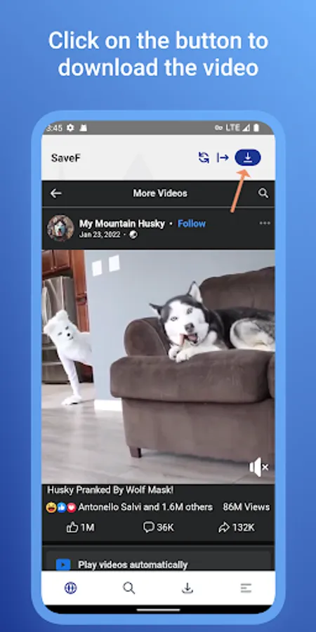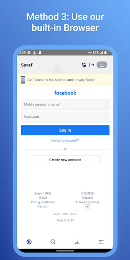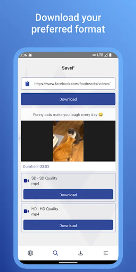 SaveF is an Video downloader for Facebook is a powerful app to download HD videos from Facebook. Our SaveF video downloader helps you download Facebook videos through link and built-in browser. You don’t need to log in, you can copy link or share link, afterwards, video downloader automatically starts. It’s so EASY and SUPER FAST.