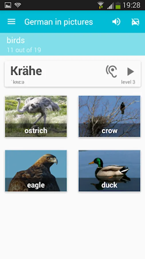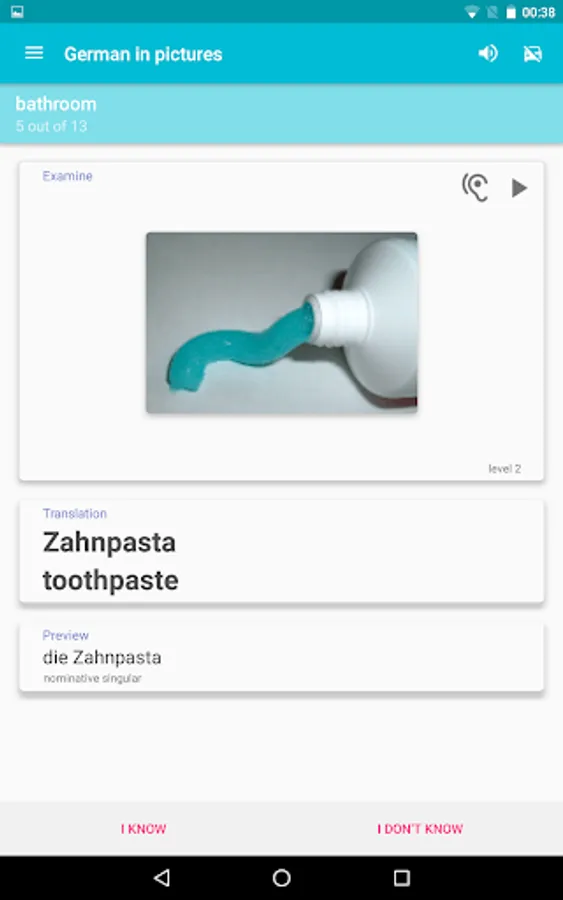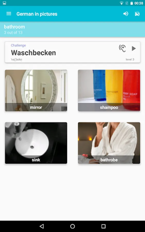 This app takes an audiovisual approach to help you learn the German language and to memorize German words. The words will be presented with pictures and audio.