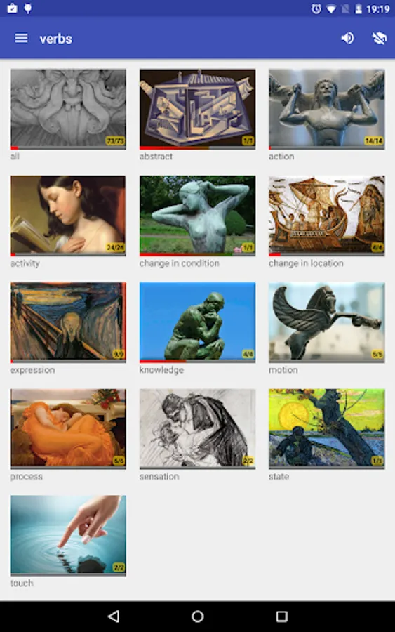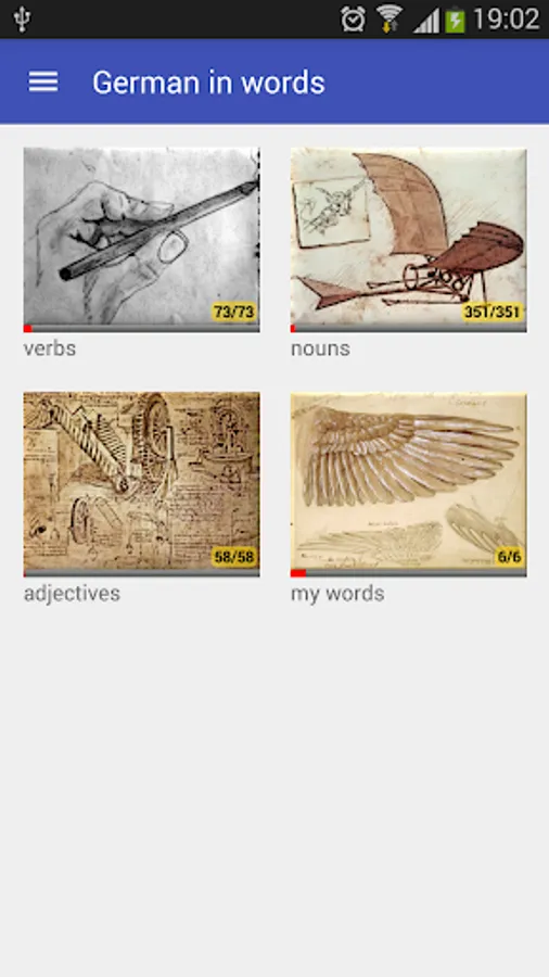 The words are thematically categorized. To keep the learning process handy, we took care, that the card sets are not getting too big.