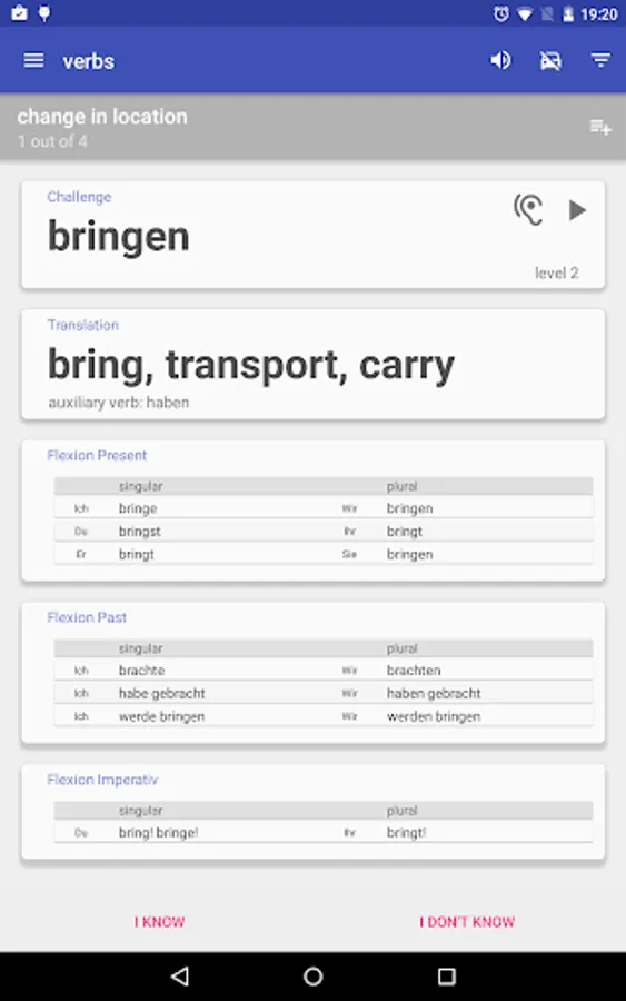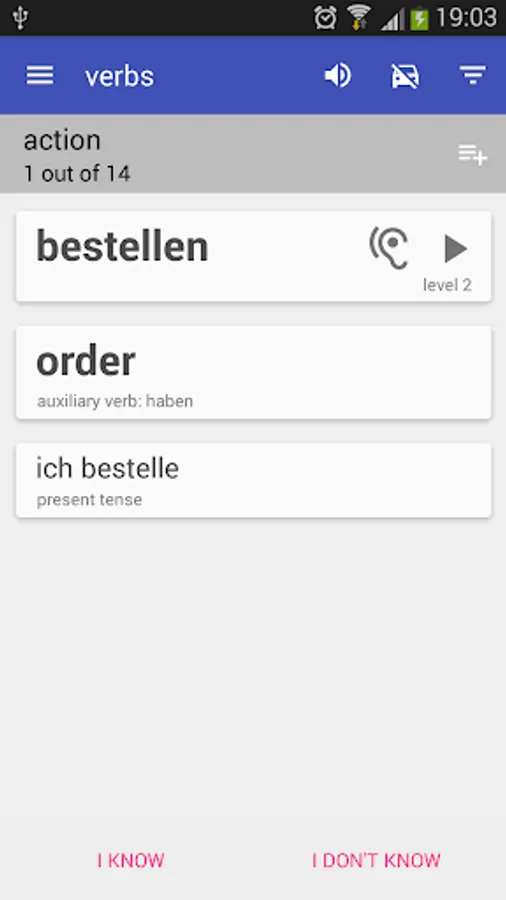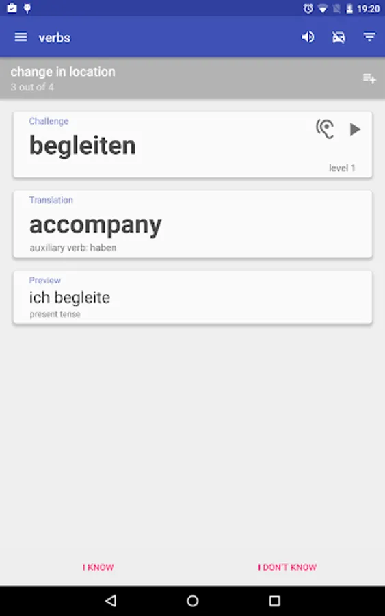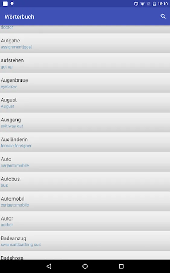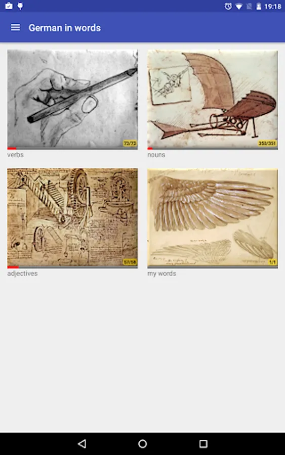 German in Words is designed to help you to learn german vocabulary efficiently. The app is based on flashcards.