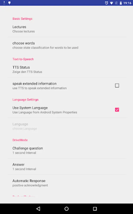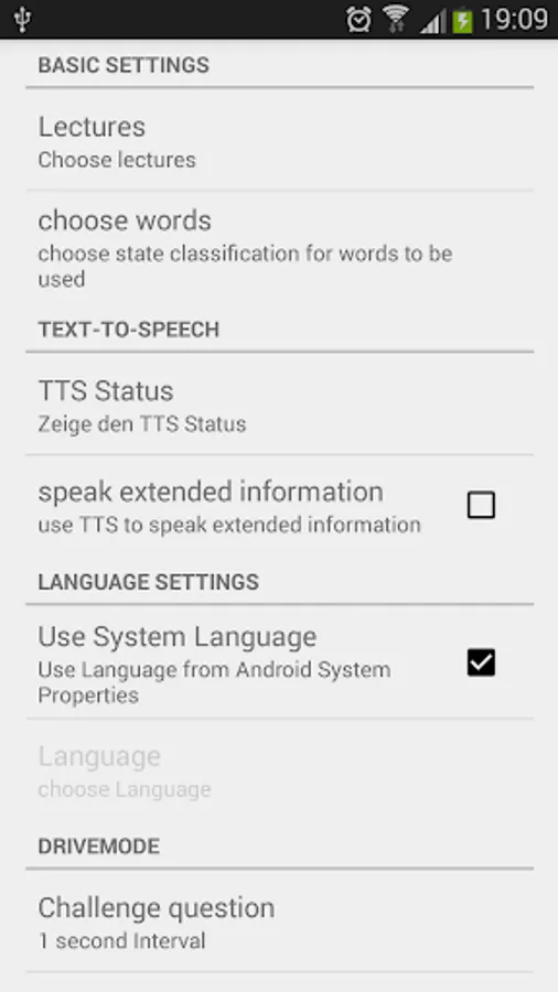 The integrated dictionary gives you the possibility to look up words. With the drive mode (no interactivity necessary) you can learn the german vocabulary while driving or jogging.