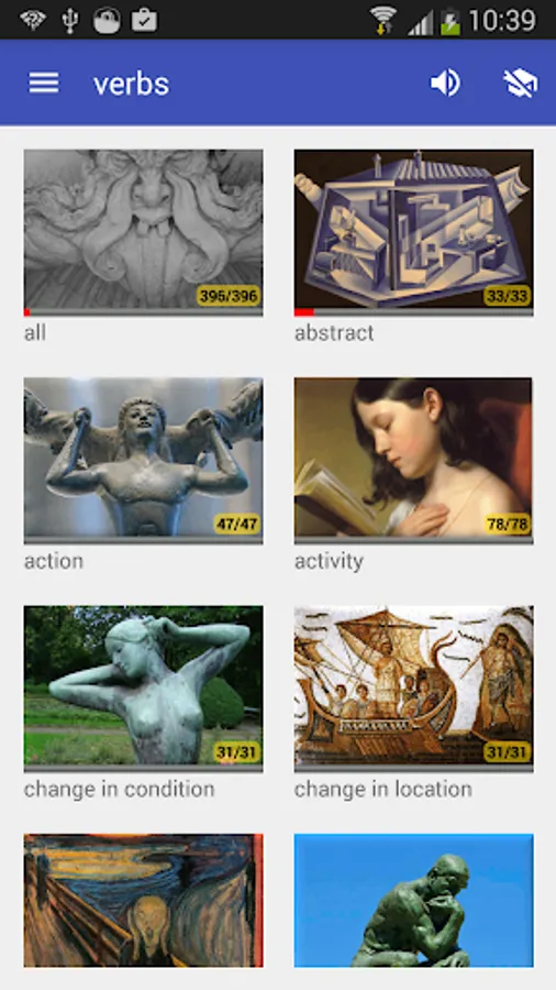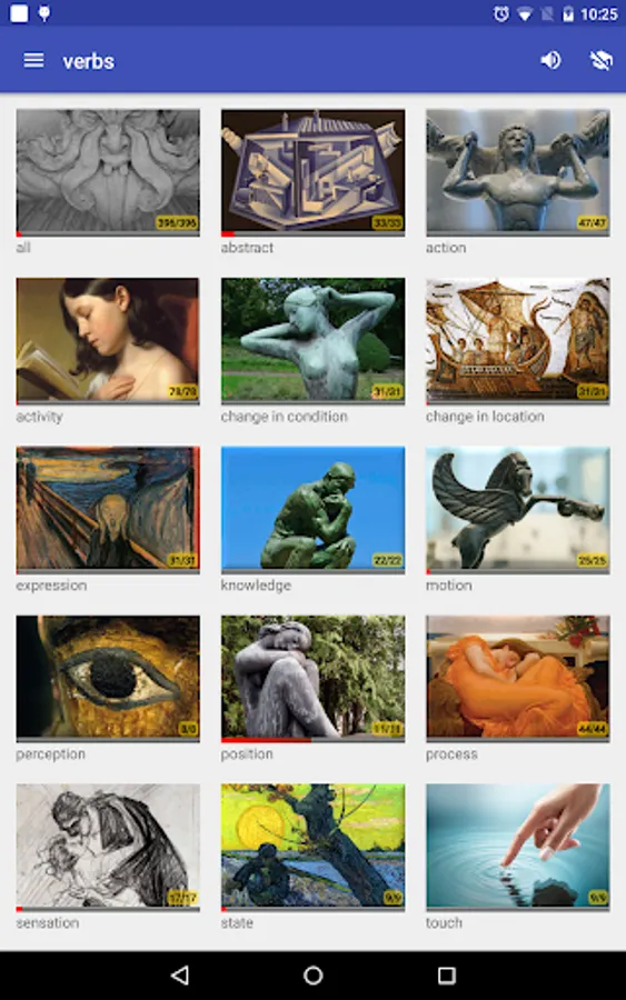 The words are thematically categorized. To keep the learning process handy, we took care, that the card sets are not getting too big.