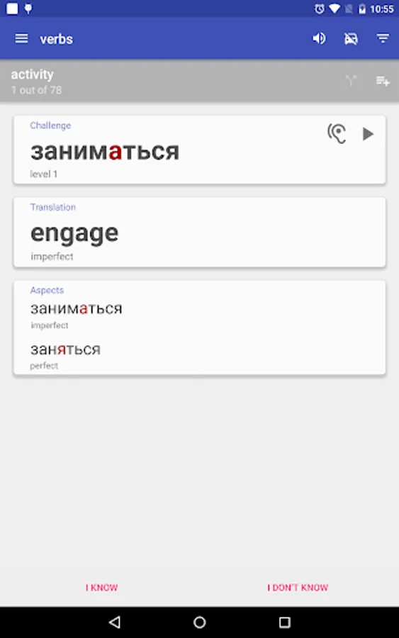 Russian in Words is designed to help you to learn russian vocabulary efficiently. The app is based on flashcards.