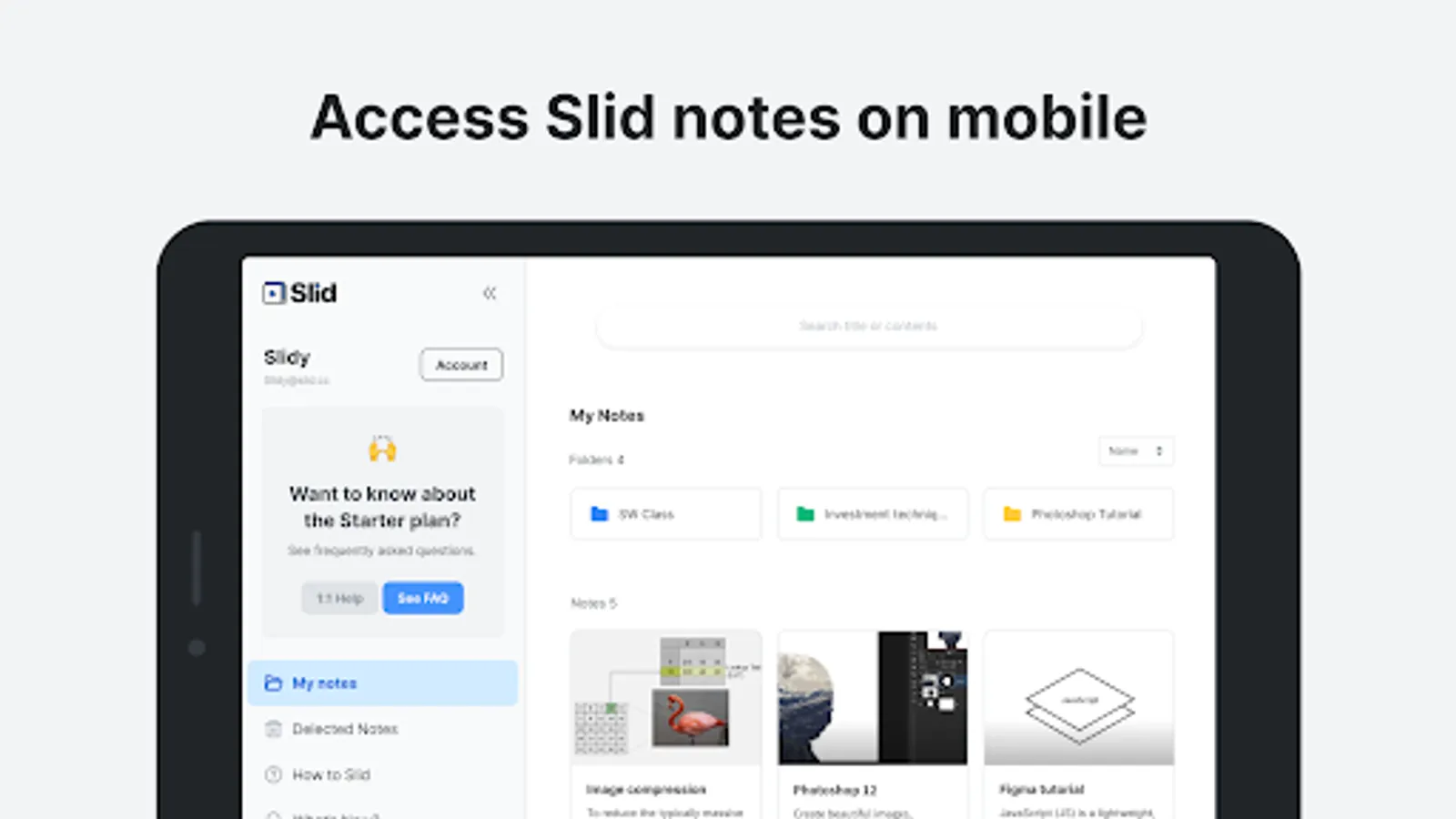 New notes can be taken only from Desktop/Laptop by Browser extension or Desktop app. Currently Slid mobile app is only for reviewing the notes that are already made.