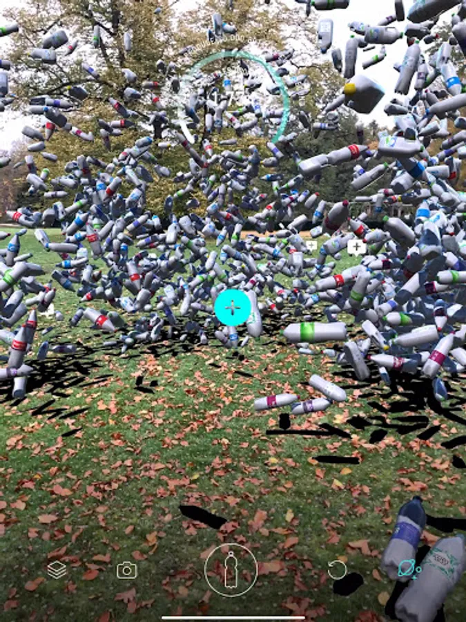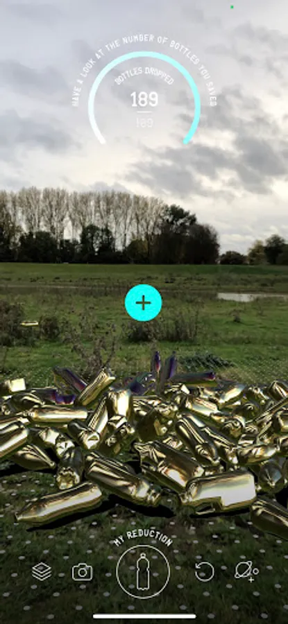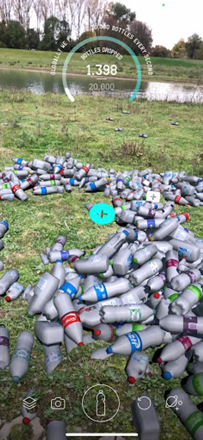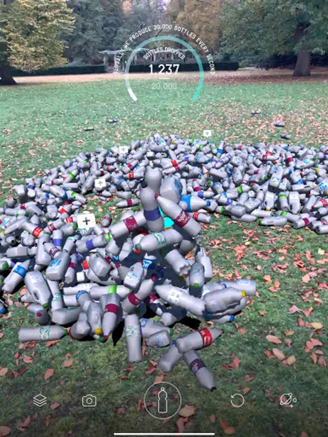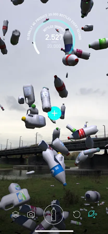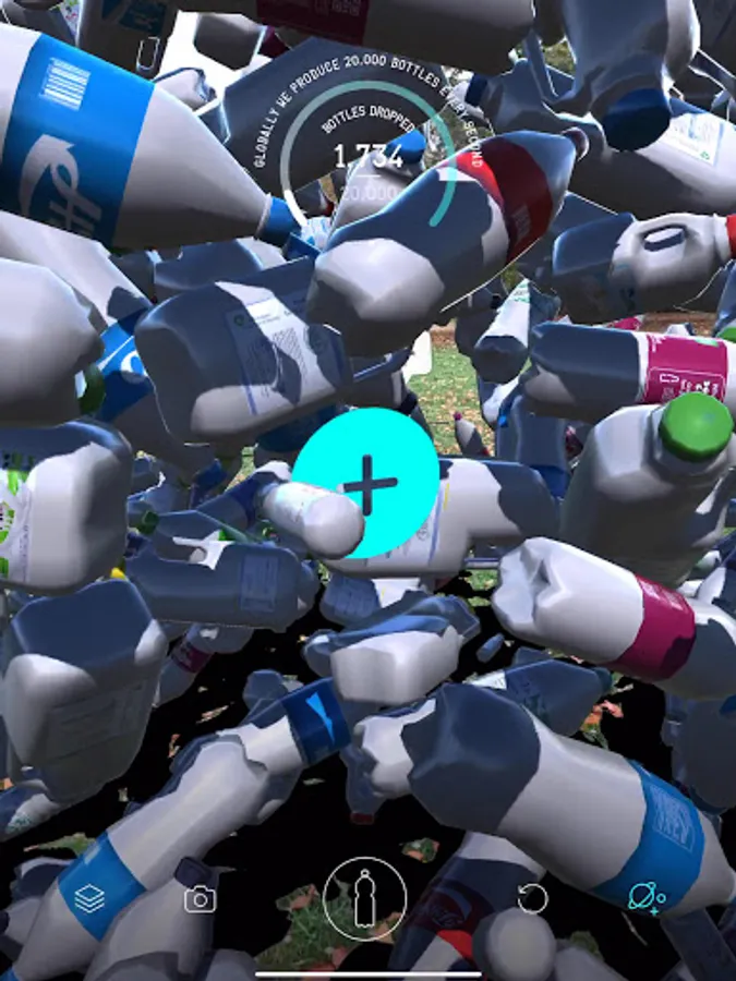 In this app, you can drop one second of global plastic bottles production into your own home... and take a selfie with it!