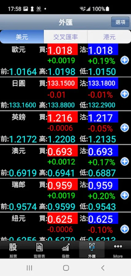Real-time exchange rate and cross rate of USD against major currencies, with trend chart