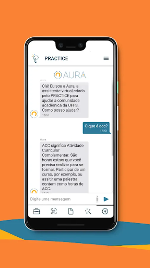The PRACTICE app allows its users to enjoy the technologies and content created by us. The purpose of this app is to provide easy access to information for the academic community from all six campuses belonging to UFFS. With one tap, you can access the academic calendar, bus schedules, the UK menu, chat with Aura, our Virtual Assistant, and much more! And of course, inform our applicants about their demands, with the notification feature linked to the Mural, our service system.