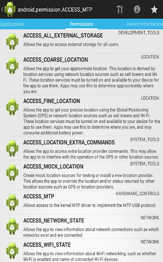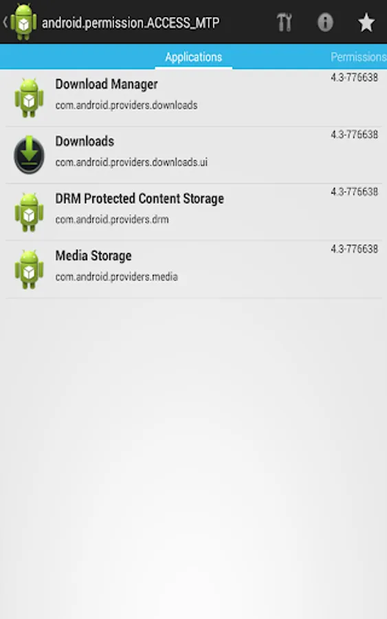 Launch also the hidden "App Ops Settings" permission screen in android 4.3 & 4.4/4.4.1 KitKat to manage individual permissions for your applications... (hit the star on the menu bar)