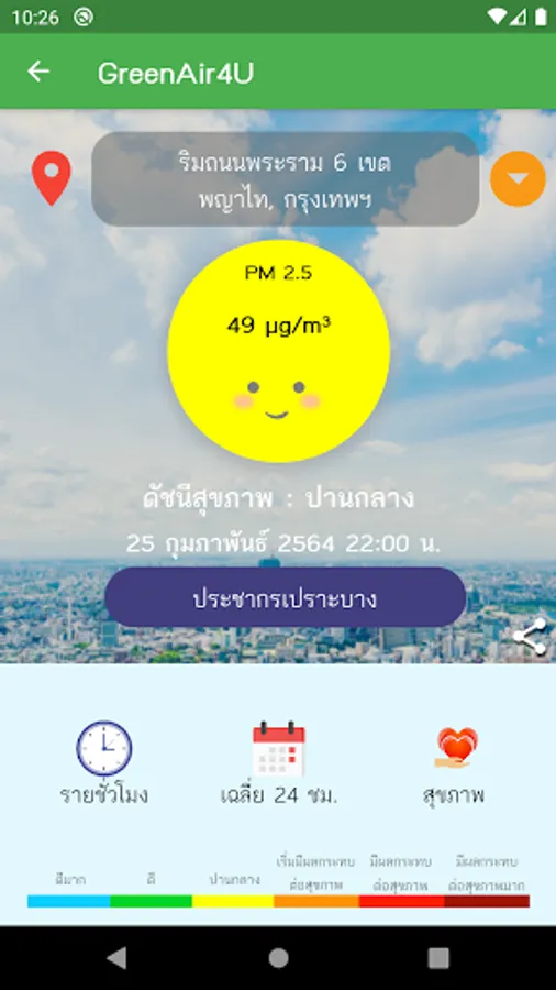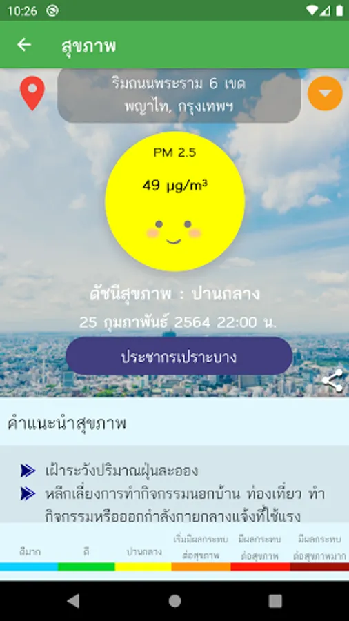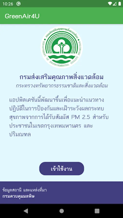 This application-based platform development has been made to provide more channels to disseminate information to the public about the situation of PM2.5 concentration that will affect health. Including guidelines for the prevention and surveillance of health effects from exposure to PM2.5