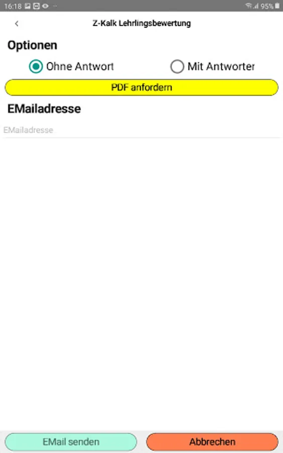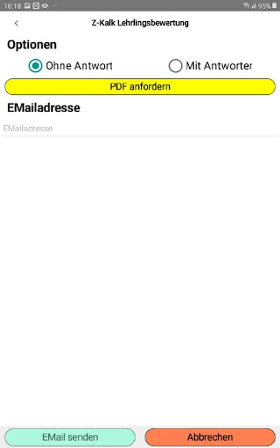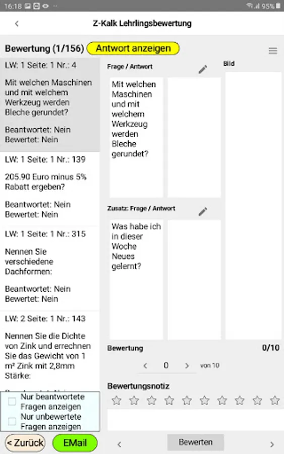 With this program, apprentice questions can be evaluated and the evaluation can be sent to the apprentice by e-mail.