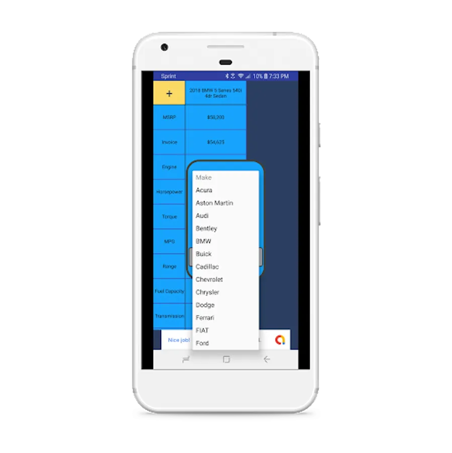 Car Specs is a free app that allows you to quickly research and compare cars/vehicles/automobiles across many of the most commonly requested attributes/specifications when buying or selling cars. All car makers/manufacturers in the United States for all combinations of models and trims since 2010 are available.