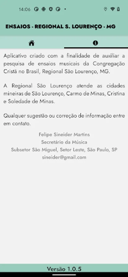 Browse the application and use it to consult the musical essays of the Christian Congregation in Brazil, Regional São Lourenço, MG.