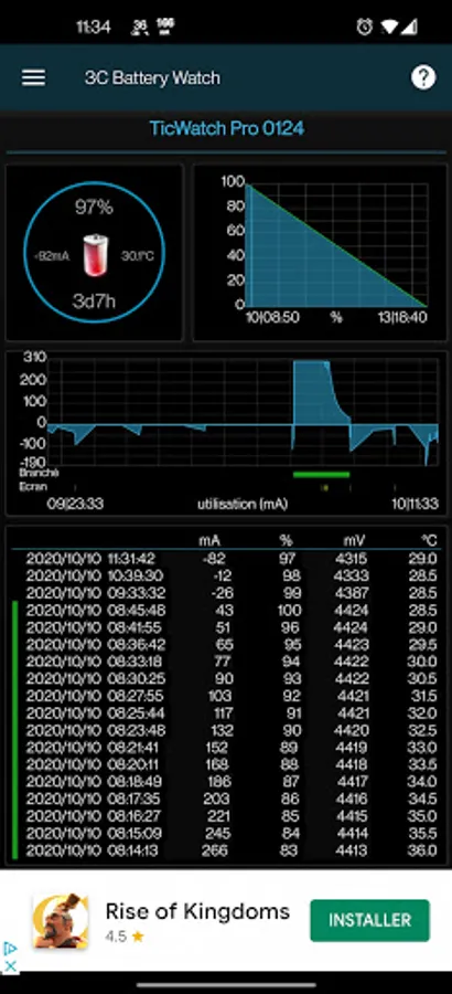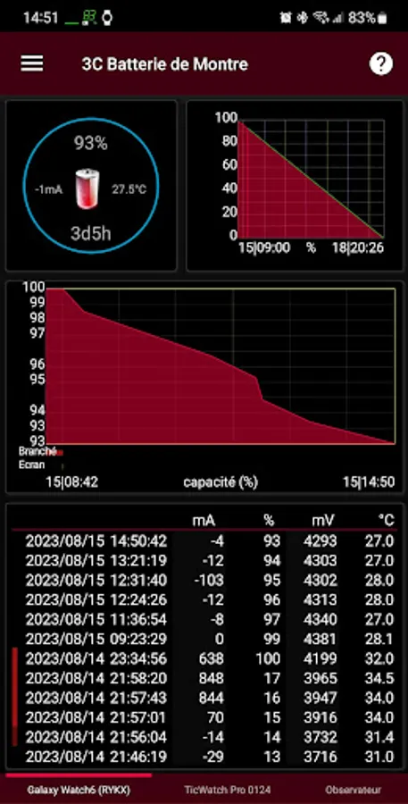 Nicely track battery data (%, mV, °C, mA) of all your connected watches.