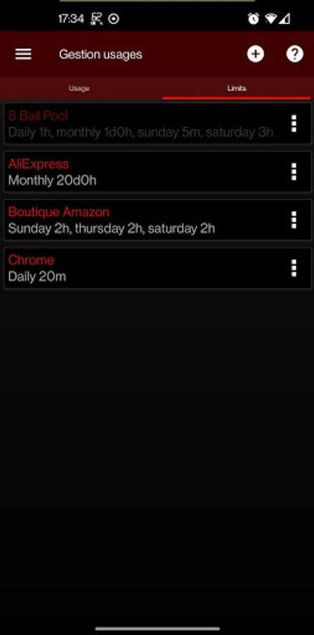 ★ Limit app usage per day, per month or per day of the week. Requires either root, the use of 3C Companion (https://3c71.com/3cc) or activating an accessibility service.
