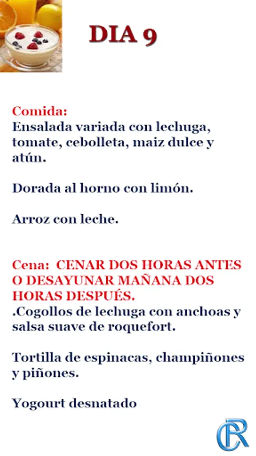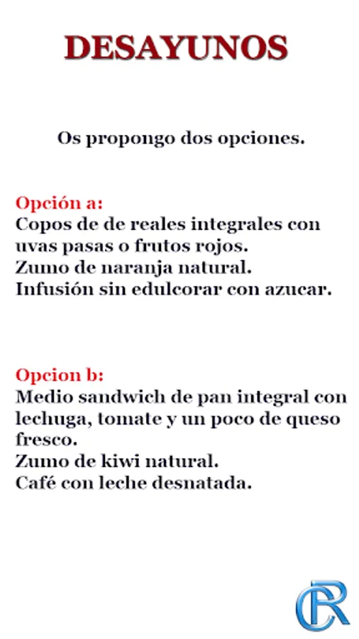 The application is very easy to handle, works basically like a book, you just have to move the images to the left with your finger above the screen and see the menu that suits you that day, they are scheduled 30 days for commas varied and balanced manner.