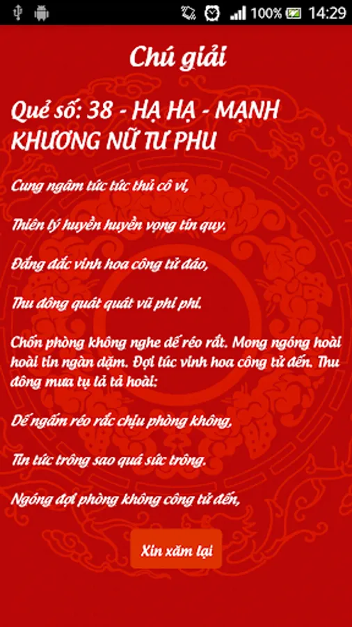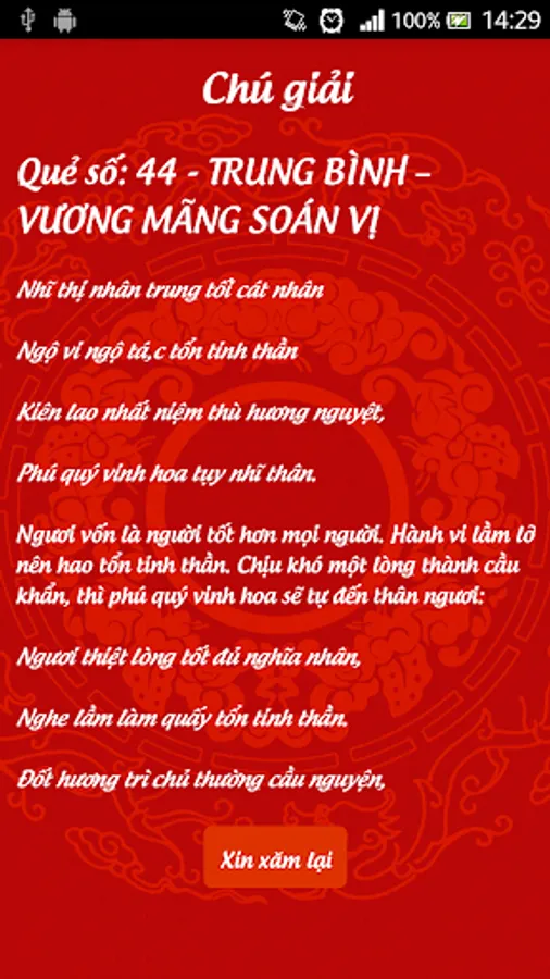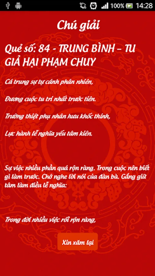 Please invasive or ask the card hexagram from immemorial custom of Vietnam.