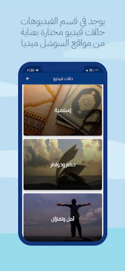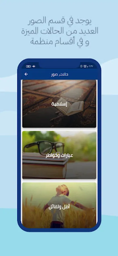 And in this application there are pictures, Islamic phrases, jokes, wisdom and more. You also find morning and evening images and words. And with a special section for profile pictures, you can always stand out among your friends with distinctive and attractive backgrounds. z