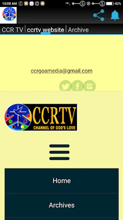 CCR TV A Channel of God's Love is a Catholic TV channel reaching out to viewers worldwide. The content is in Konkani and English. Programs include Daily Mass, Rosary, Music Videos and Bible Study. The channel is based in Goa, India.