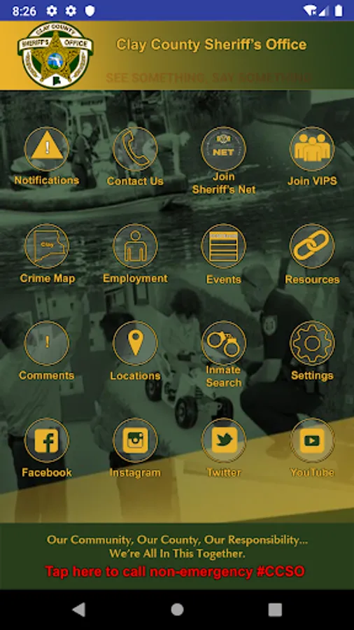 The Clay County Sheriff’s Office mobile application strives to provide excellence in communication between Law Enforcement and the Community. The application provides an interactive experience for users and allows quick access to local resources and information. The application allows citizens to connect with the Clay County Sheriff’s Office by submitting tips, providing comments, employment information, Sheriff’s NET, inmate search and the latest news from the Sheriff’s Office. This application is not designed to replace 911. If you have an emergency, please call 911. ***This is a public BETA***
